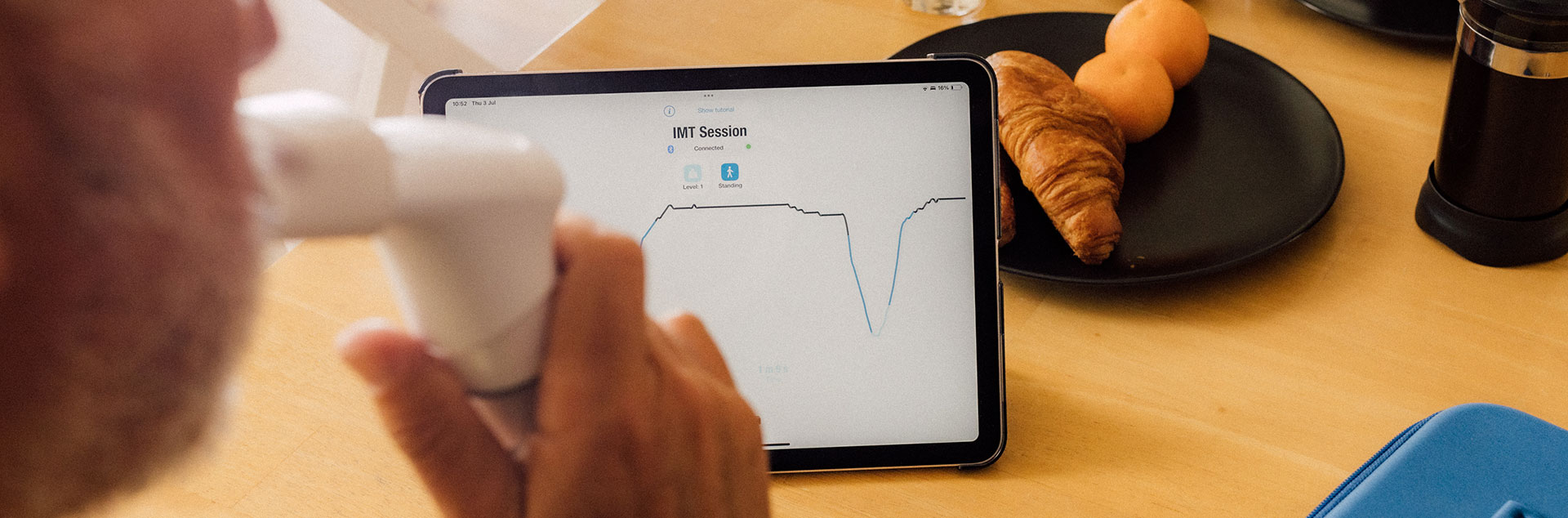 You should use your breathing trainer for 30 breaths, twice a day – preferably in the morning and evening.